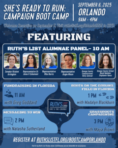 SAVE-THE-DATE: We are coming to the Orlando area in September 2025 to host a two-part event in support of Ruth’s List Florida’s candidates. Though online registration is technically closed, you can still RSVP with a member of our team. Contact Political Director Haleigh Hutchison (haleigh@ruthslistfl.org) for more information.